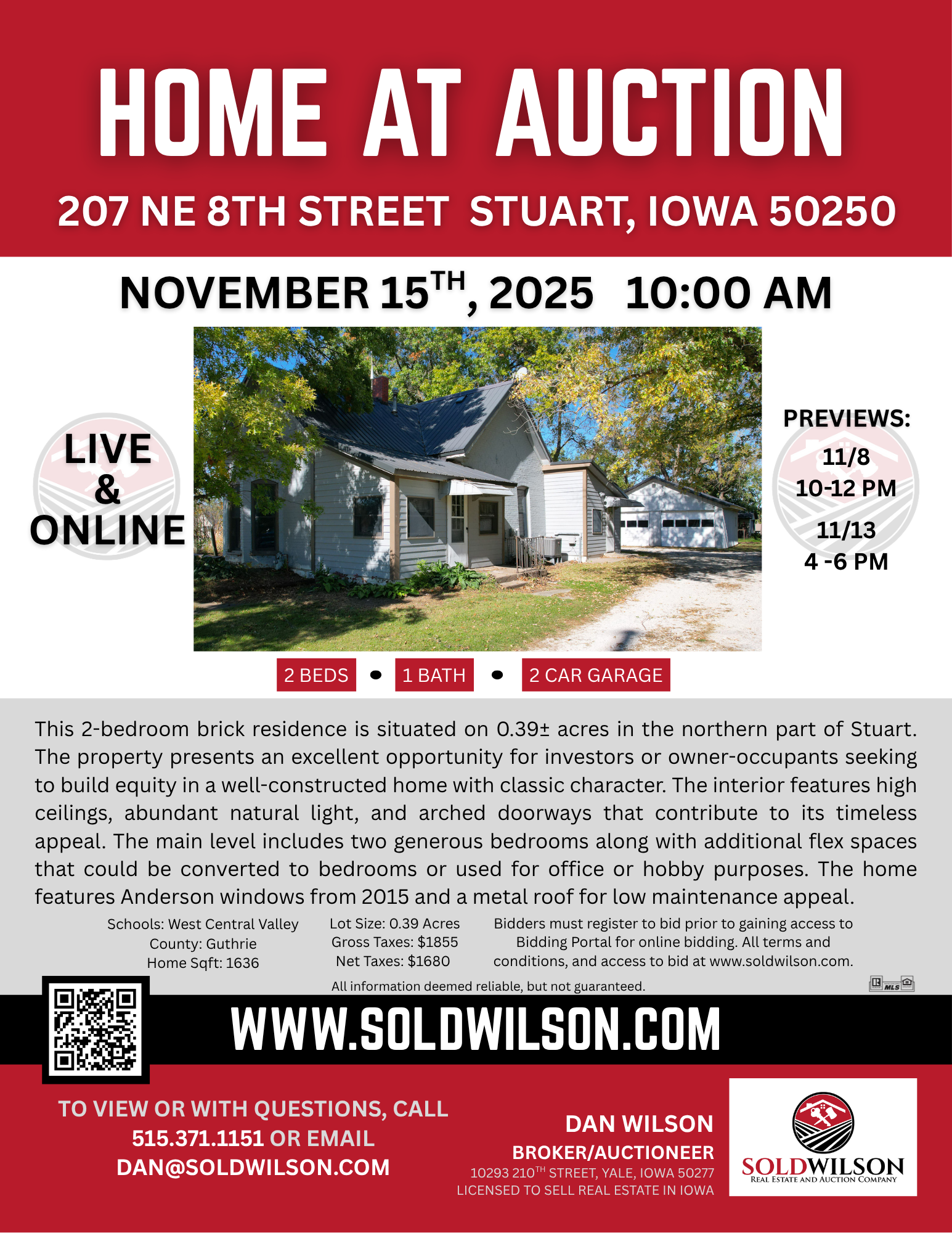 The Auction will be held at 10:00 AM on Saturday, November 15, 2025.